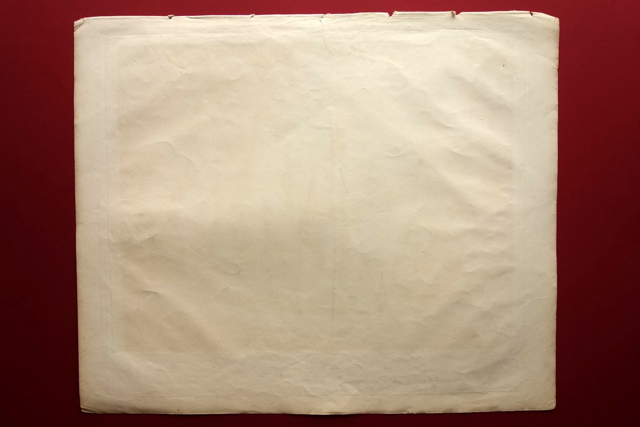 Grande incisione, Launce searching his dog crab to behave as a dog in all things" - Henry Bunbury del. Published January 1st 1794, by Thomas Macklin - Poets Gallery - Fleet St.; grande incisione in b/n su carta; didascalia descrittiva a stampa al margine inferiore, tra cui un breve passaggio de I Due Gentiluomini di Verona di William Shakespeare (opera da cui è tratto il soggetto dell'incisione). Retro bianco. Acclusa velina protettiva. Cm 46x55,5 (margine); cm 41,5x48 (incisione). Condizioni di conservazione Buone condizioni con alcune piccole lievi bruniture, minime pieghette agli angoli; margine superiore con tracce di precedente inserimento in volume. Per ulteriori dettagli vedi foto. Bella grande incisione settecentesca che riproduce una celebre scena de "I due Gentiluomini di Verona" di William Shakespeare. Dalla didascalia a margine: "From the original drawing in the collection of her Royal Highness the Duchess of York". EXTRA.0383 N "