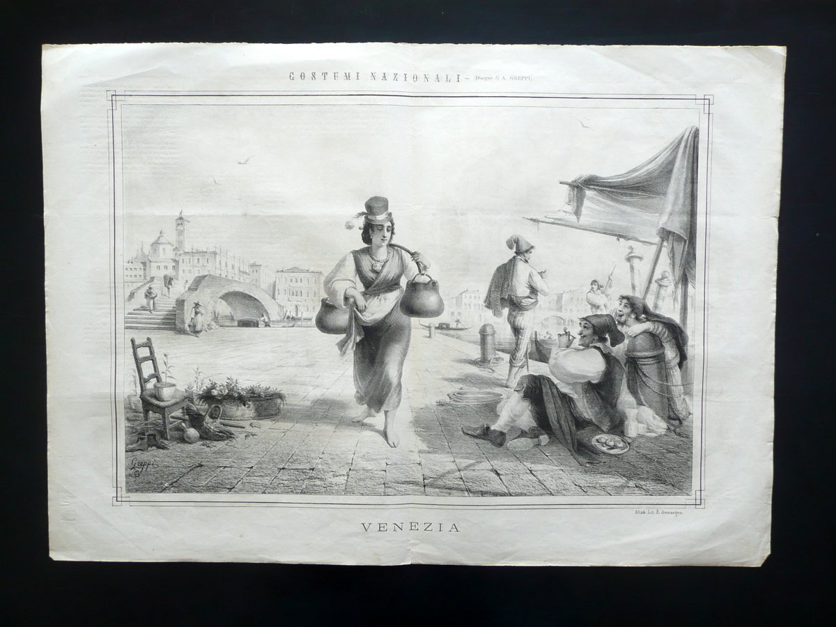 Grande Litografia Costumi Veneziani Venezia Pagina Centrale Lo Spirito Folletto