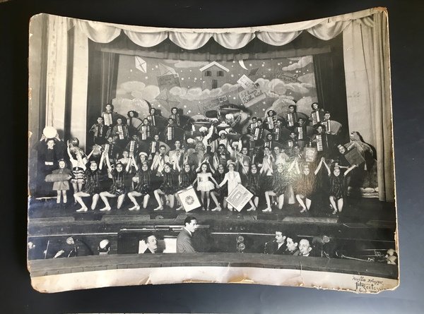 Due vere grandi fotografie di cm. 63,2x47,7, lucide, nitidissime, in bianco e nero. Leggermente incurvate, lievi usure ai bordi (forniamo immagini a richiesta). BERTAZZINI, per anni apprendista di Silvio Ottolenghi, del quale nel 1940, in seguito alle restrizioni delle leggi razziali, rilevò lo studio di piazza Carlo Felice 23-25.conservando anche lo storico slogan della ditta Nulla sfugge [al mio obbiettivo] " che infatti compare in calce alle due foto.per alcuni anni, 1) Spettacolare quella con circa 50 persone, tutti i gruppi di bambine, bambini, ragazzi, ragazze in costumi di fantasia, suonatrici e suonatori di fisarmonche, presentarirce e 8 orchestrali sbucanti in primo piano; alcune tabelle ostentate (Monopoli di Stato, Sigarette (?) Xantia, Colonia Coty.) fanno pensare a una festa aziendale o popolare (natalizia: cartelli a Babbo Natale) sponsorizzata o organizzata da aziende del quartiere, tra cui forse la Manifattura Tabacchi, che fu poi bombardata il 13 luglio 1943, ma continuò l'attività fino al 1996. 100. 2) Meno affollata (32 persone) ma spettacolare anche l'altra foto, 75. Al verso delle due foto, due marche da bollo rosse col ritr. del re, da 20 cent., timbrate con data 21 febbraio 1941. Le due foto