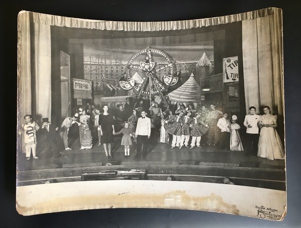 GRANDE SPETTACOLO MUSICALE NATALIZIO torinese, imperniato su una festa o sagra popolare. 2 grandissime FOTOGRAFIE montate editorialmente su spesso cartone.