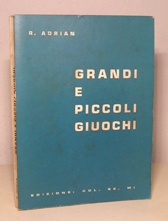 Edizione: Col. Se. Mi. 1959; br. ed. in 8°, pp. 232. Con disegni e figure nel testo. Ottime condizioni. INDICE: Importanza del giuoco sull'educazione dei bambini; Il giuoco nelle diverse età; Consigli per le assistenti ai giuochi; Come preparare il terreno di giuoco; Grandi giuochi - Giuochi sportivi - Giuochi all'aperto - Giuochi al chiuso e per veglie.