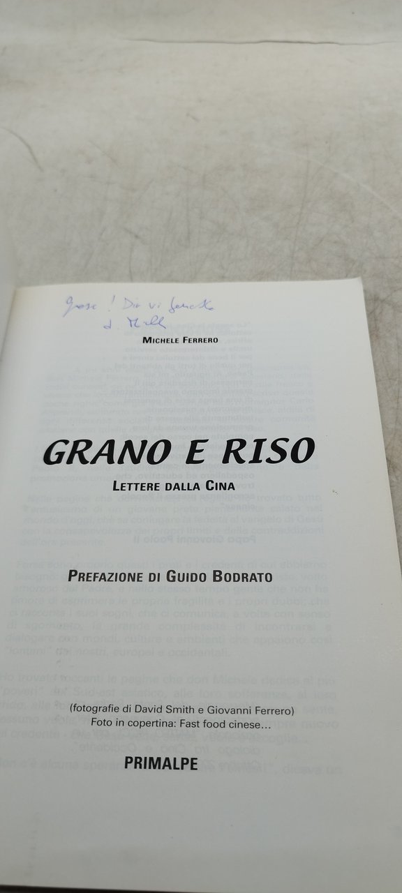 michele ferrero grano e riso lettere dalla cina prefazione di guido bodrato. , primalpe 2002 italiano, 127 °°