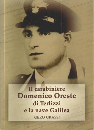 Gero Grassi, Il carabiniere Domenico Oreste di Terlizzi e la nave Galilea. (Terlizzi 25 settembre 1904 – Mare Jonio 29 marzo 1942), CSL Pegasus Edizioni, s.l. (ma stampato a Terlizzi, presso la Centro Stampa Litografica di Pansini V. e C. s.n.c.) 2016, pp. 221, cm 21, br. ed. In calce alla quarta di copertina: Copia omaggio. Monografia sul carabiniere terlizzese Domenico Oreste (1904-1942) morto nel 1942 nell`affondamento della nave Galilea, silurata da un sommergibile nemico durante la navigazione fra Patrasso e Bari. Dedica autografa dell’autore alla prima carta bianca. Leggere tracce d’uso, alcune sottolineature a evidenziatore e biro, una annotazione a biro al forniespizio, ma nel complesso molto ben conservato.