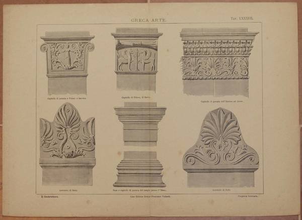 Bella litografia di architettura del 1890 circa tratta dall'opera "Il costruttore" edita da Vallardi.TECNICA: Litografia DIMENSIONI FOGLIO: cm 38X27,5 DIMENSIONI INCISIONE: cm 29x21,5 EPOCA: 1890 circa CONDIZIONI: Buone condizioni. Alcune usure e strappi marginali. Piegatura verticale. Beautiful lythography of 1890 circa taken from the work "Il costruttore" edited by Vallardi. TECHNIQUE: Lythography PAGE SIZE: cm 38x27,5 PRINT'S SIZE: cm 29x21,5 PERIOD: 1890 circa CONDITION: good conditions. Some yellowings and tears in the edges. Vertical folding.
