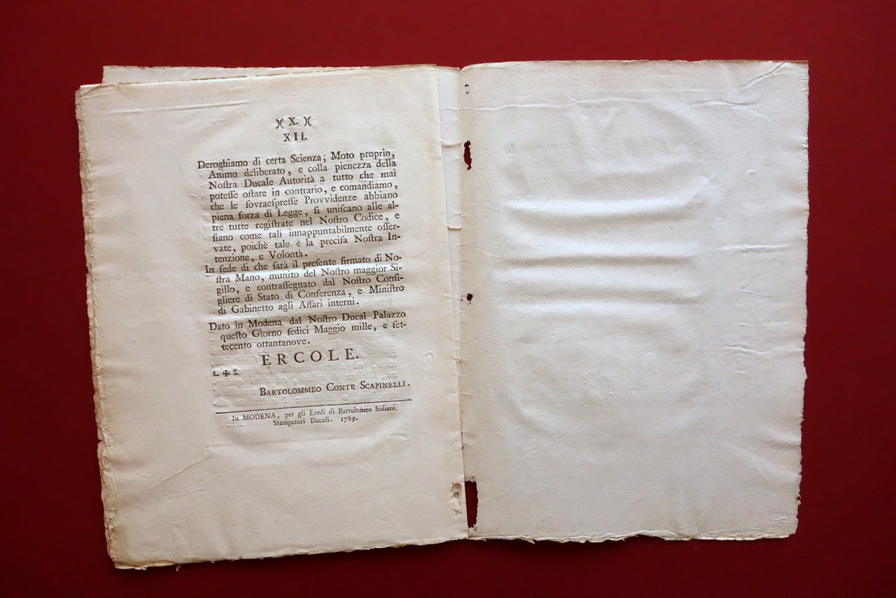 Grida Ercole III Duca di Modena Disposizioni per Agricoltura 10 Pagine 1789