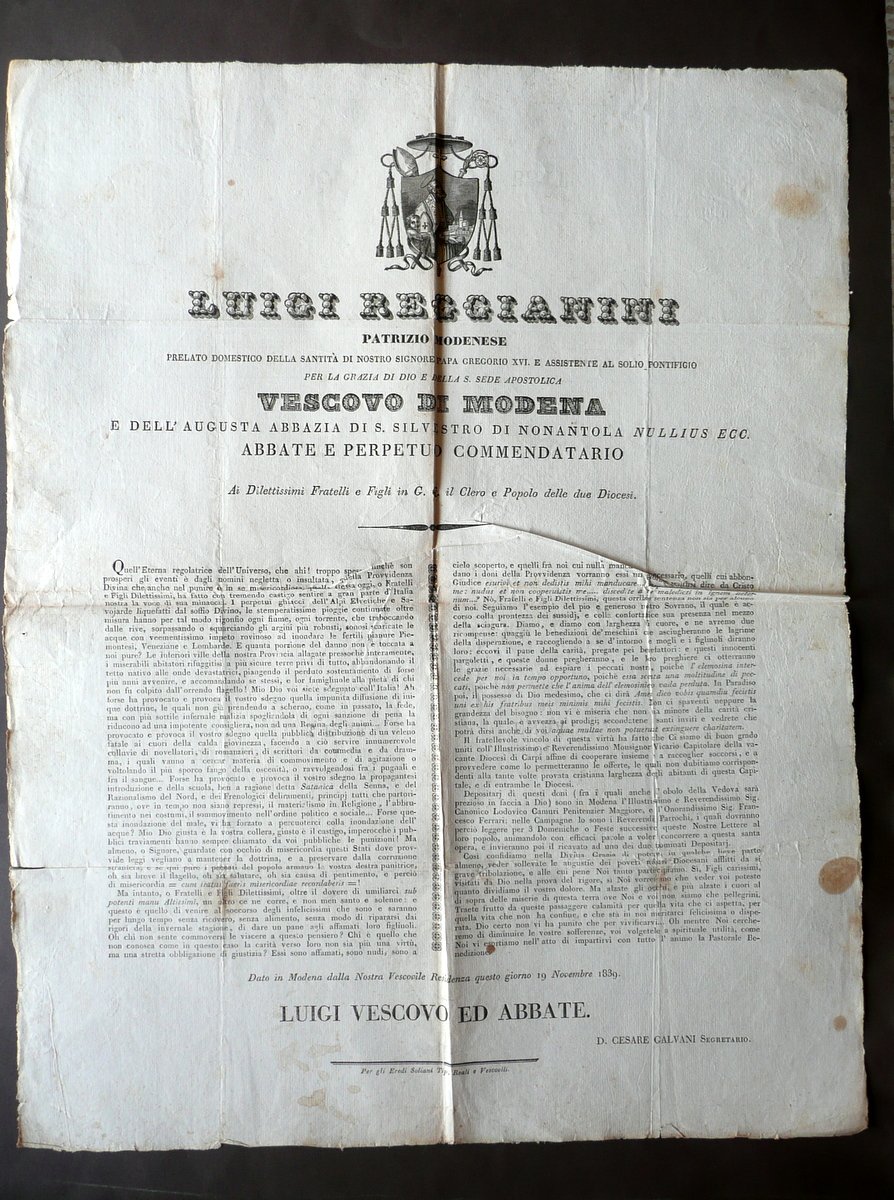 Grida Luigi Reggianini Vescovo Modena Antimassonica Punizione Alluvione 1839