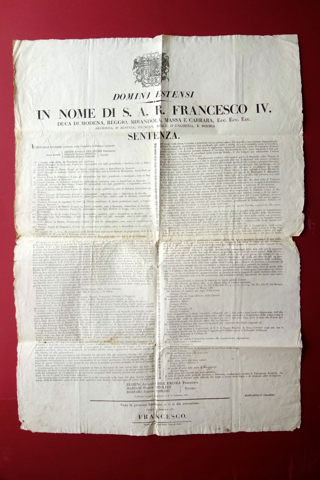 Grida Sentenza Francesco IV Modena Moti 1831 Mirandola Sassuolo Banda Armata