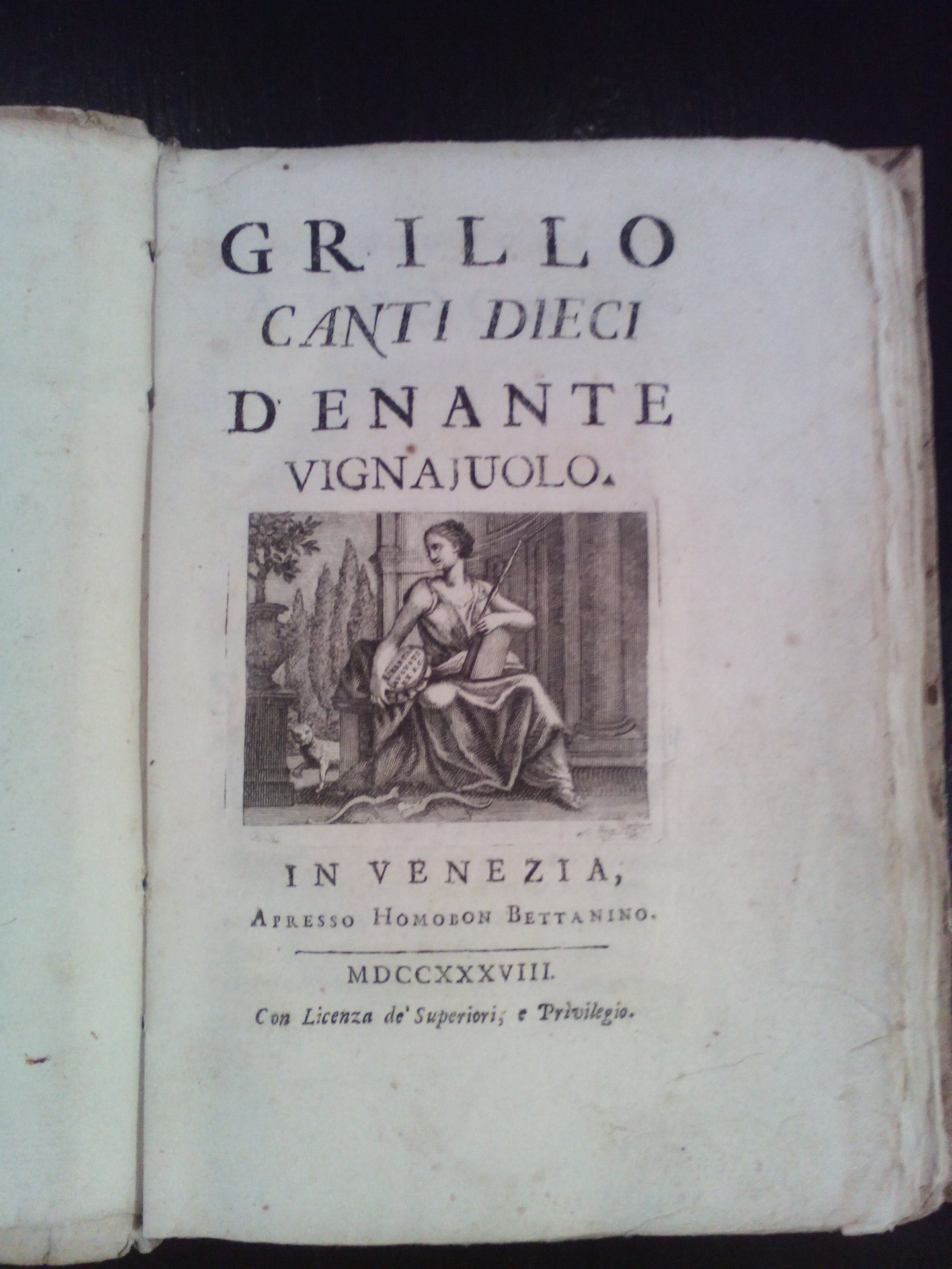 Seconda edizione del Bettanino, dello stesso anno dell'edizione originale di Tumermani. In 8°, p. (12)244. Vignetta al frontespizio e dieci graziose testatine dello Zucchi ad apertura di canto. Manca l'antiporta. Legatura coeva in cartoncino "alla rustica". Esemplare con barbe. Titoli calligrafici al dorso.