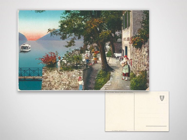 Cartolina a colori, Grotto Helvetia sulla via di Gandria non viaggiata Dimensioni 14x9cm