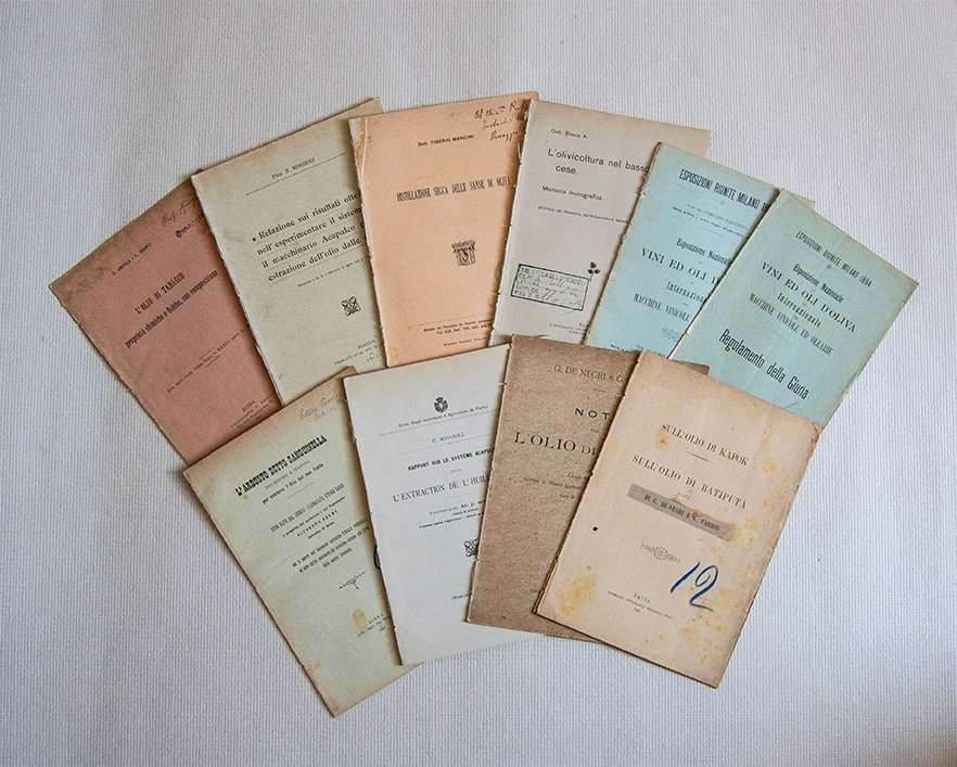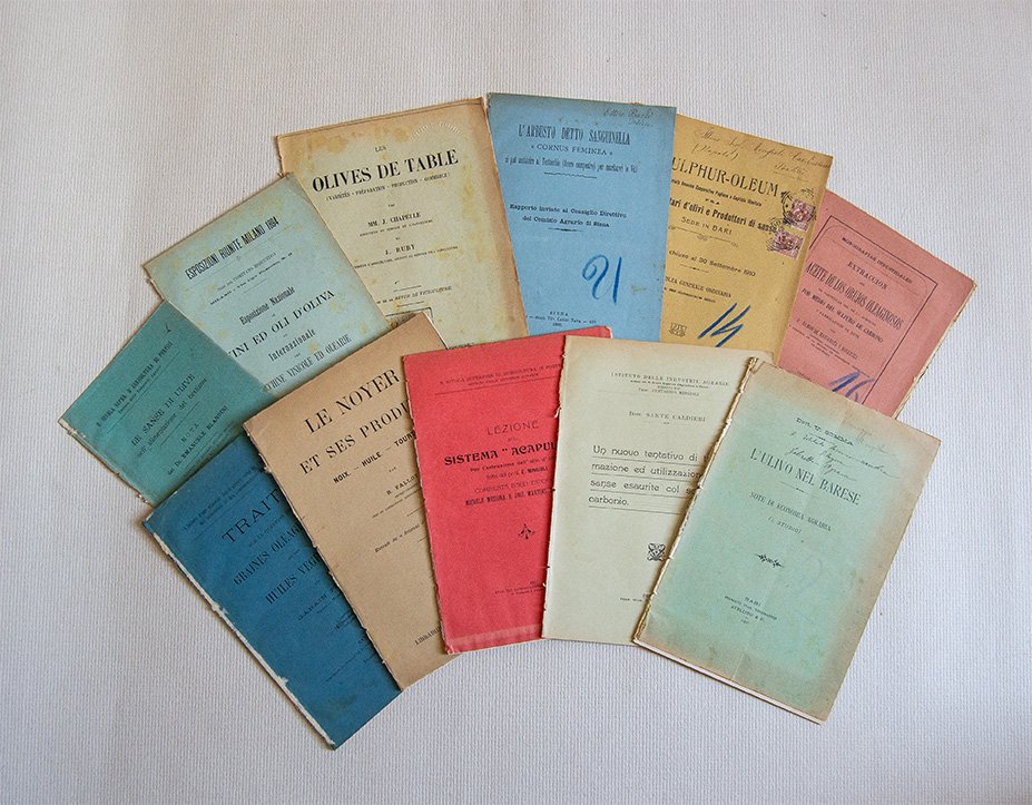 Tra gli argomenti specifici trattati vi sono la coltivazione, l'estrazione, le attrezzature e gli usi delle sanse. Mentre l'olio di oliva è l'argomento di molti di questi opuscoli, altri trattano gli oli derivati dal tabacco, dal kapok, dall'amaranto, dal jambo, dal legno, dalla noce, dalla sanguinella, ecc. Le date di pubblicazione spaziano dal 1879 al 1911 e, mentre la maggior parte di essi è in lingua italiana, il gruppo comprende cinque opere in francese e due in spagnolo. Tutti provengono dalla biblioteca professionale del Prof. Eustachio Mingioli, noto esperto italiano in materia di oli alimentari, in particolare di olio d'oliva. Mingioli è, infatti, l’autore di cinque degli opuscoli di questo gruppo. La lista completa sarà fornita su richiesta.