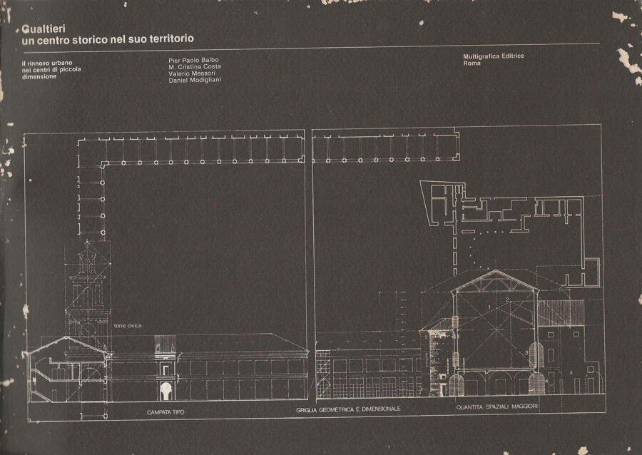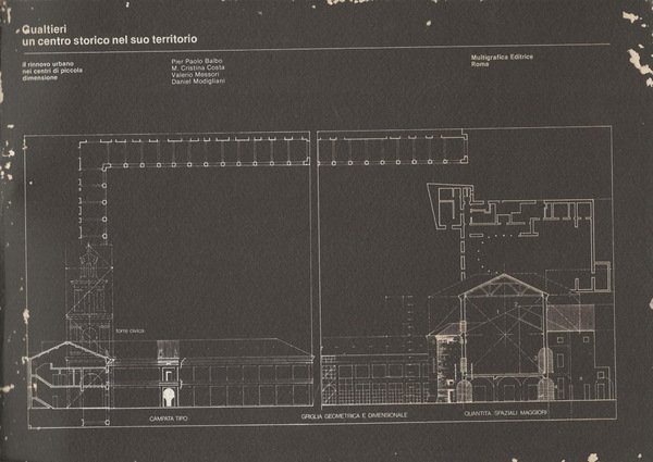 Coperta segnata da fattore tempo con usura ed irregolarità ai piatti e al dorso, tagli e pagine con leggera imbrunitura, libro completamente fruibile, realizzato per conto dell'Amministrazione Comunale di Gualtieri per la definizione del Piano particolareggiato del Centro Storico, progettista incaricato e coordinatore: Arch. Maria Cristina Costa, con presentazione di Angelo Salomoni (Il Sindaco), presenti numerose illustrazioni in nero nel testo, numero pagine 80