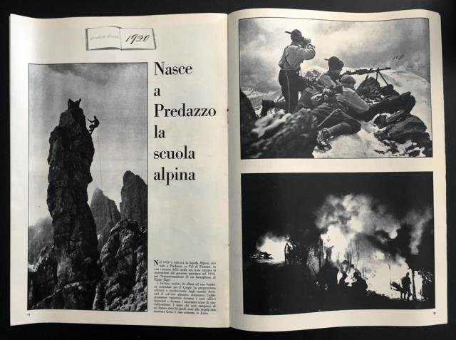 Tipografia "Cronograph", Roma, giugno 1961. In 4to, pp. 50, corredato di belle illustrazioni in b/n e in colore n. t. e da interessanti articoli, tra cui l'istituzione della Scuola Alpina a Predazzo e la Scuola nautica a Pola, bross. orig. ill. su entrambi i lati di copertina. Una leggera ondulazione ma buono stato di conservazione.