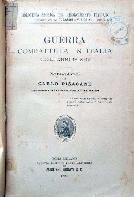 Guerra combattuta in Italia negli anni 1848- 1849. Narrazione di Carlo Pisacane ripubblicata per cura del Prof. Luigi Maino.