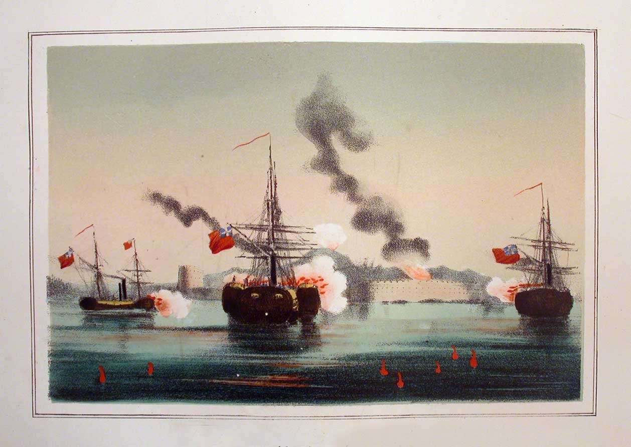In-4 gr. (mm. 342x263), tela coeva (lievi abrasioni), pp. XII,188, con pregevole frontespizio figurato in litografia colorata. Il volume è ornato da elaborati grandi capilettera e finalini inc. su legno ed è magnificamente illustrato fuori testo da 48 tavole litografate a colori, tutte ritoccate a mano, di cui: 23 sono i ritratti dei più importanti personaggi che ressero le sorti delle azioni belliche nell'Europa Orientale (Turchia, Balcani, Sebastopoli, ecc.), avvenute nella metà dell'800, qui rappresentati in uniforme e ambientati - 25 sono vedute, scene di guerra e battaglie navali + 2 carte topografiche a colori. Celebre opera dedicata alla guerra di Crimea, particolarmente ricercata per la parte iconografica, di vivissima colorazione. Le tavole, entro doppia sottile cornice, sono in ottimo stato; solo qualche rara e lieviss. fioritura intercalata nel testo, cerniera interna leggermente allentata, altrimenti bellesemplare.