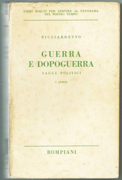 GUERRA E DOPOGUERRA - SAGGI POLITICI - I^ SERIE. COLLANA "LIBRI SCELTI" MILANO ED. BOMPIANI I edizione 1943