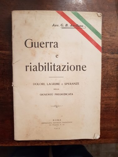 Guerra e riabilitazione. Dolori, lagrime e speranze della gioventù spregiudicata. storia documentata contenente lettere di Sua Maestà la Regina Madre e dei Ministri Orlando, Martini, Ciuffelli e Barzilai. Primo migliaio.