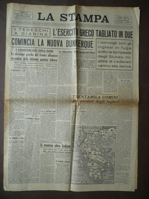Guerra Grecia Esercito Greco Gianina Fronte Albanese Quotidiani \La Stampa" 1941"