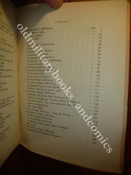 TITOLO: GUERRA NOSTRA 1915-1918 - CON PARTICOLARE STUDIO SUI GIUDIZI DEGLI ALLEATI E DEI NOSTRI NEMICI AL VALORE E ALL'OPERA DELLE TRUPPE ITALIANE DESCRIZIONE: Omero Marangoni Editore Milano, 1933 I^ Ed., copia n. 503, br. ed. ill., pp. 325, con 18 f. b/n f.t. e 4 cartine n.t. in 8°. Un'analisi succinta ma completa di tutti i principali avvenimenti che videro la partecipazione delle truppe italiane in terra, cielo e mare nei giudizi sia degli Alleati che dei Nemici. CONDIZIONI: Ottime/Perfette. PESO / WEIGHT: 422 gr. without package