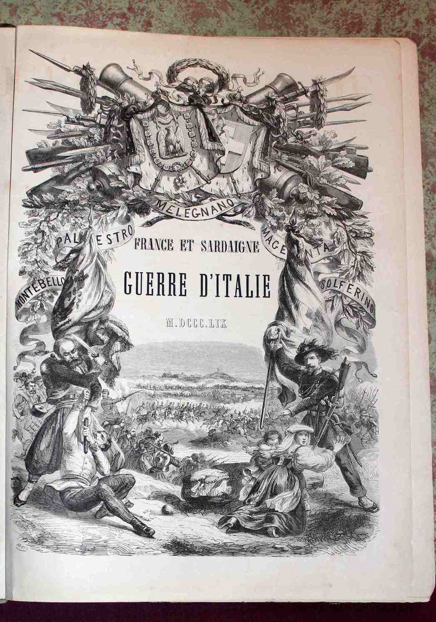 Guerre d' Italie en 1859. Tableau historique, politique et militaire, illustré de 265 gravures sur bois d' après des croquis et des dessins tirés de l' album de l' Empereur et de la collection de l' Illustration