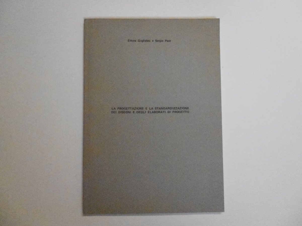 E. Guglielmi, S. Pace, La Progettazione E La Standardizzazione dei Disegni E degli Elaborati di Progetto L'editore non è indicato (stampato da Tipografica Leberit), 1984, cm 24x17; pp. 108 + gli indici; ill. f. t. in b. n. Cartoncino edit. grigio. Condizioni di conservazione Esemplare in ottime condizioni di conservazione. Una piccola piega all'angolo sup. destro del fronte della coperta. SETT36.L23088G
