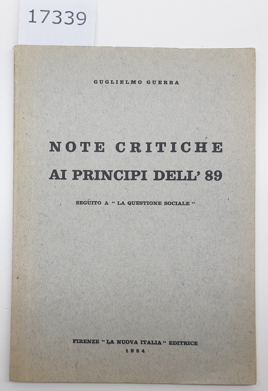Guglielmo Guerra Note critiche ai principi dell'89 La Nuova Italia 1954 autografato