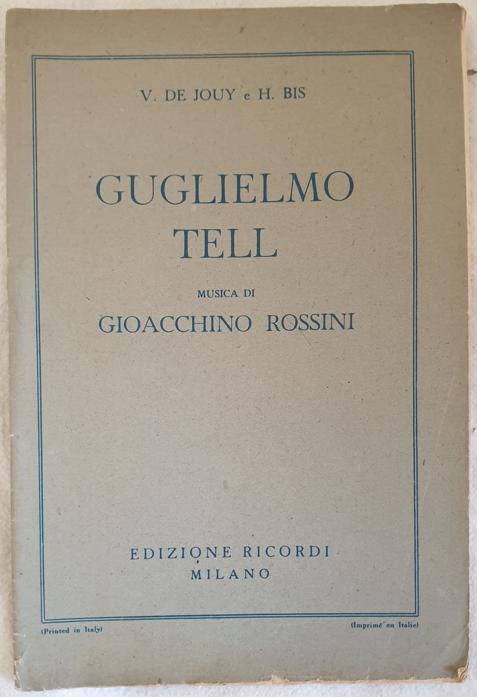Bel libretto d'opera del 1946 dell'opera in quattro atti "Guglielmo Tell" di Gioachino Rossini (1792-1868) su libretto di Jouy e Bis dal dramma di Friedrich Schiller.<BR>La prima rappresentazione ebbe luogo all'Opera di Parigi il 3 Agosto 1829, la prima italiana a Lucca il 17 settembre 1831. In buone condizioni. Brossura editoriale in buone condizioni generali con lievi usure ai margini e dorso. Legatura in buone condizioni. All'interno le pagine si presentano in ottime condizioni con rare fioriture. In 8. Dim. 20x13,5 cm. Pp. 32.