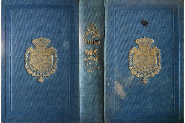 Madrid, en la Imprenta Nacional, 1853. 4to.; 584 pp. y 276 pp. Portada con pérdida de la esquina interior superior. Ejemplar falto del retrato de Isabel II. Encuadernación de época en tela azul, con superlibros.