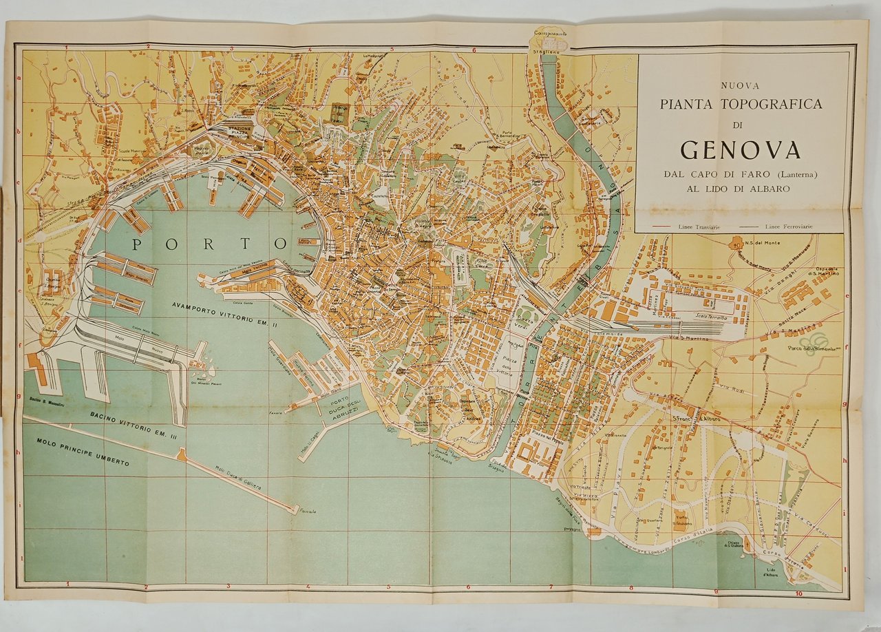 Guida - Pianta topografica di Genova e del porto. Con tutte le indicazioni dei pubblici servizi, indice stradale, dei lavori portuali e dei nuovi bacini Vittorio Emanuele III e Benito Mussolini