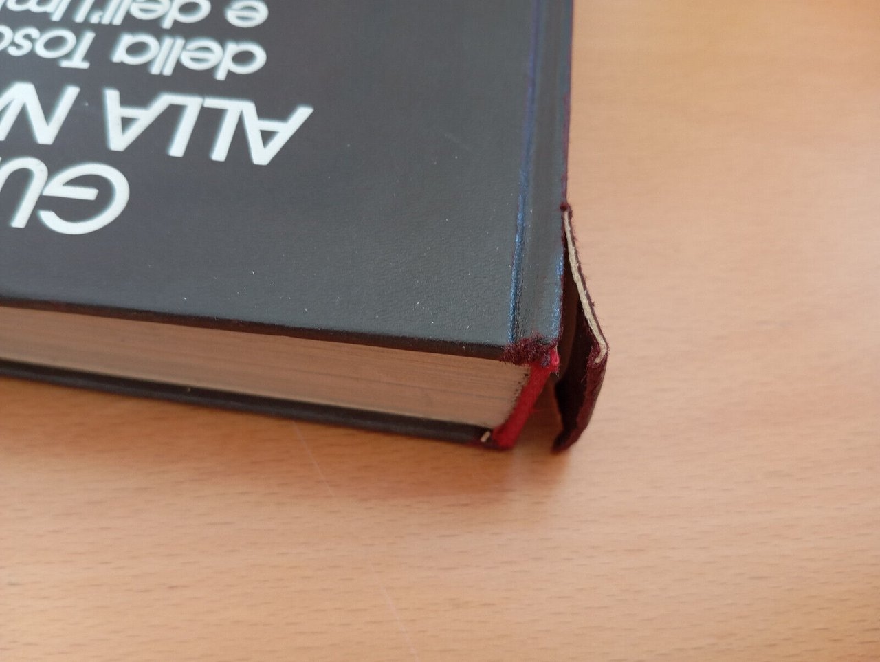 Dorso esterno con parziale scollamento in altro, come da foto. Legatura con cendimeenti in un paio di punti, come da foto, ma non compromessa