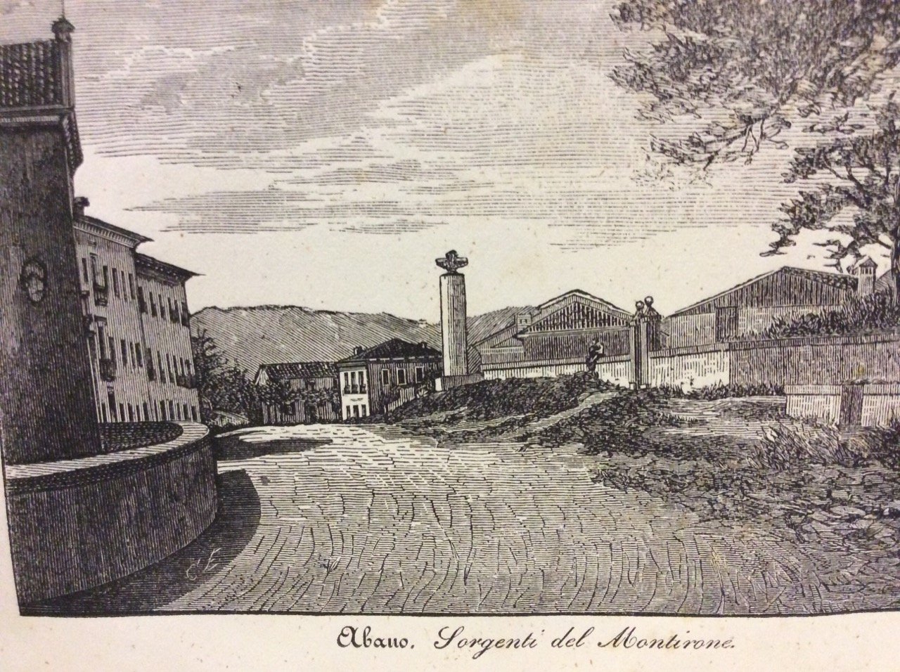 In-8 p. (mm. 210x140), t. tela coeva, titolo oro al dorso, pp. 195, ben illustrato fuori testo da: 3 tavole xilografate protette da velina (Abano Sorgenti del Montirone - Battaglia Terme di S. Elena - Abano Terme), 1 carta topografica delle Terme Euganee (più volte ripieg.), 1 Prospetto dei risultati ottenuti sopra 8055 infermi curati colle termali euganee negli ospizi termali di Abano, dall'anno 1842 al 1871 (più volte ripieg.).Interessante guida con cenni topografici, storici, chimici e terapeutici sulle fonti termali di Abano, Montortone, S. Pietro Montagnon, Montegroto e Battaglia.Esemplare su carta grande, ben conservato, con dedica ms. dell'autore.