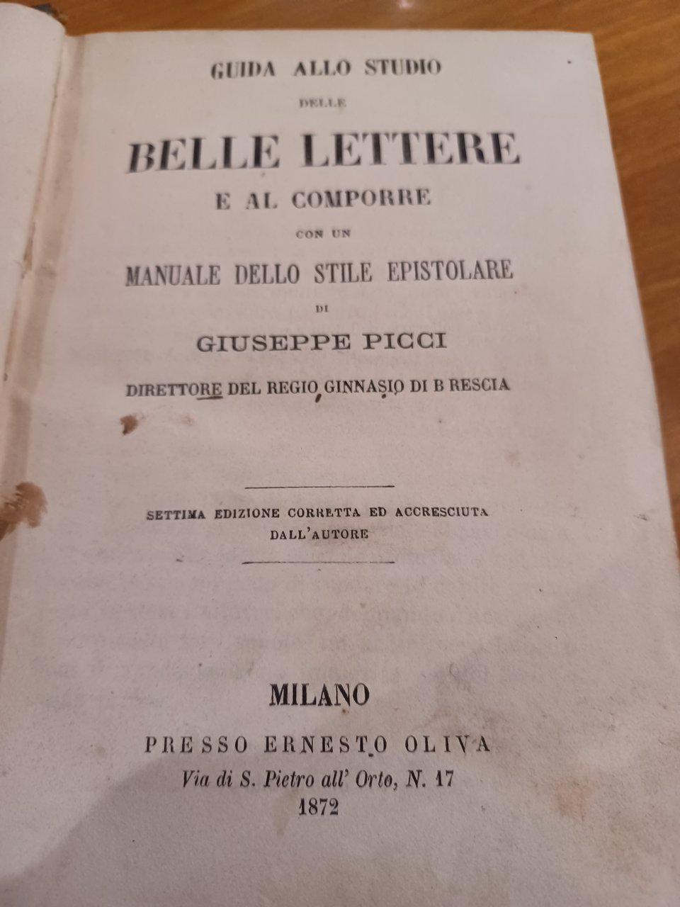 Con un manuale dello stile epistolare di Giuseppe Picci. Settima edizione corretta ed accresciuta dall'autore. Rilegatura rovinata, presenta qualche scarabocchio in matita.