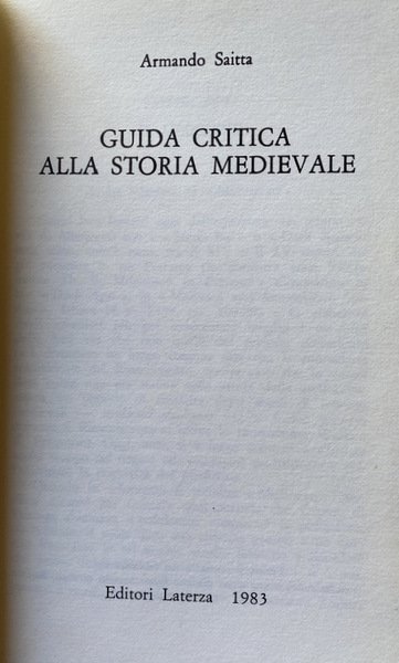 GUIDA CRITICA ALLA STORIA MEDIEVALE