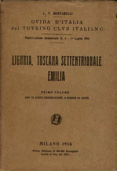 Guida delle regioni di Liguria, Toscana Settentrionale e Emilia, primo volume; con 15 carte geografiche e 8 piante di città.Br.ed., ill., in 16mo, lievi segnature e bruniture ai margini, segnalibri in stoffa.