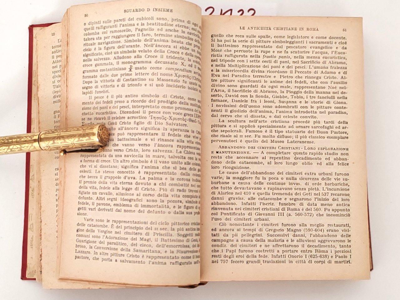 Legatura rigida editoriale in condizioni accettabili, aloni e sporcizie ai piatti e al dorso, titolo al piatto anteriore al dorso scolorito, tagli bruniti con fioriture diffuse, fogli di guardia illustrati, una piccola piega all'angolo inferiore delle prime due pagine, fioriture alle pagine interne che non vanno a disturbare la lettura, a pagina 240 carta geografica del centro di Roma con una mancanza all'angolo inferiore senza interessamento dell'immagine, vedere immagini, lieve brunitura al margine esterno delle pagine, n. pagine 867, terza di copertina illustrata, dimensioni cm 16 x 11