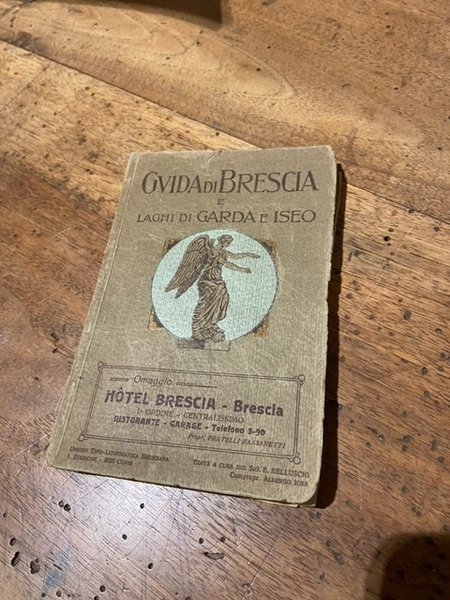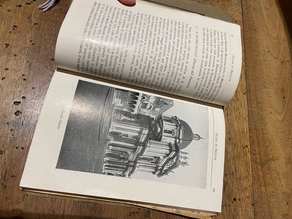 Brossura editoriale illustrata, cm11.5x17, pp 144+ circa (40) pubblicitarie; 19 illustrazioni in nero e 2 carte ripiegate in bicromia (piante di Brescia e della provincia). Il frontespizio annuncia 20 illustrazioni ma l'indice ne indica solo 19, che sono presenti. Prima edizione di questa guida turistica promossa dalle strutture alberghiere della zona.