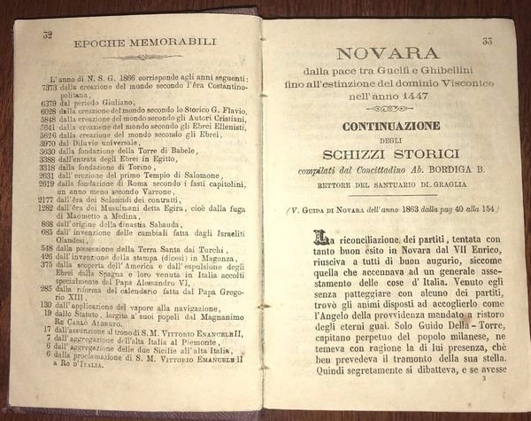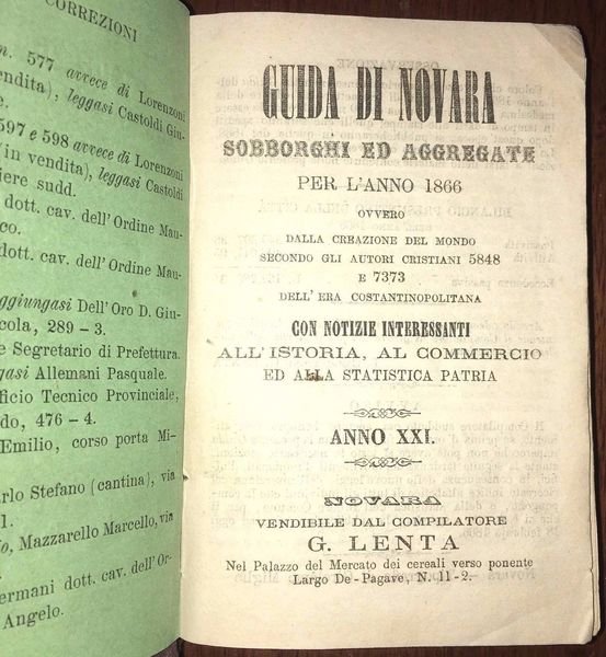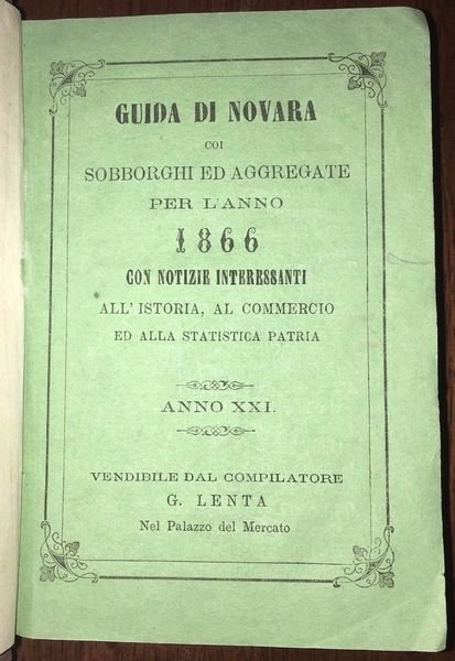 Guida di Novara, sobborghi ed aggregate per lanno 1866 ovvero dalla creazione del mondo secondo gli autori cristiani 5848 e 7373 dellera costantinopolitana, con notizie interessanti allIstoria, al commercio ed alla statistica patria. Anno XXI.