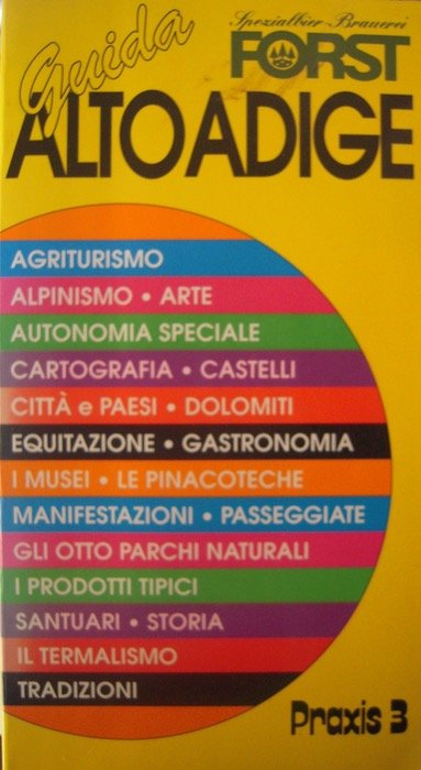 Guida Forst Alto Adige: agriturismo, alpinismo, arte, autonomia speciale, cartografia, castelli, città e paesi, Dolomiti, equitazione, gastronomia, i musei, le pinacoteche, manifestazioni, passeggiate, gli otto parchi naturali, i prodotti tipici, santuari, storia, termalismo, tradizioni.
