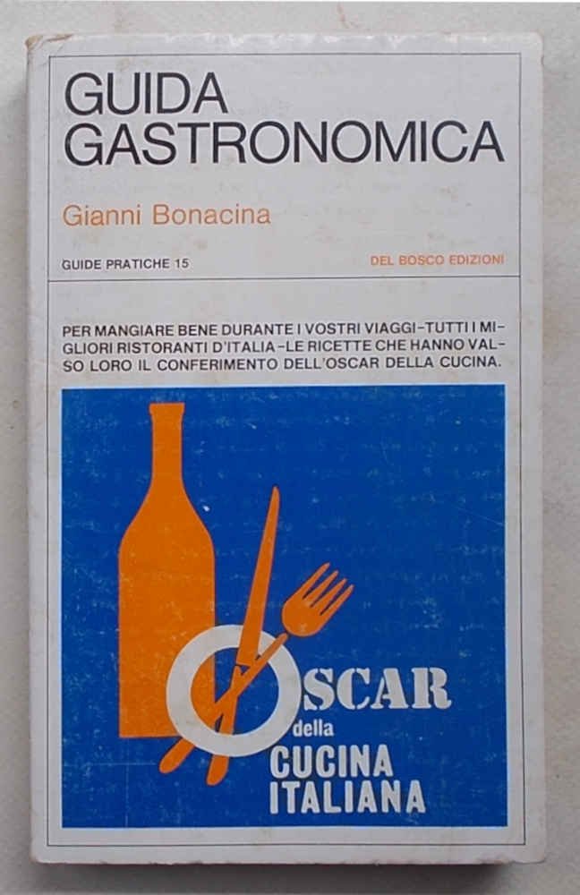 In 8° (cm. 19,5 x 11,5); pagg. 191; leggera cartonatura originale illustrata a colori. VG. ** "Per mangiar bene durante i vostri viaggi - tutti i migliori ristoranti d'Italia - le ricette che hanno valso loro il conferimento dell'Oscar della Cucina."