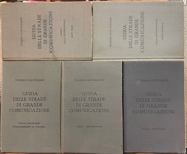 GUIDA ITINERARIA DELLE STRADE DI GRANDE COMUNICAZIONE E DI PARTICOLARE INTERESSE TURISTICO DELL'ITALIA: 1°, ITALIA SETTENTRIONALE-2 tomi., 2°, ITALIA CENTRALE., 3°, ITALIA MERIDIONALE., 4°, ITALIA INSULARE, POSSEDIMENTI E COLONIE.