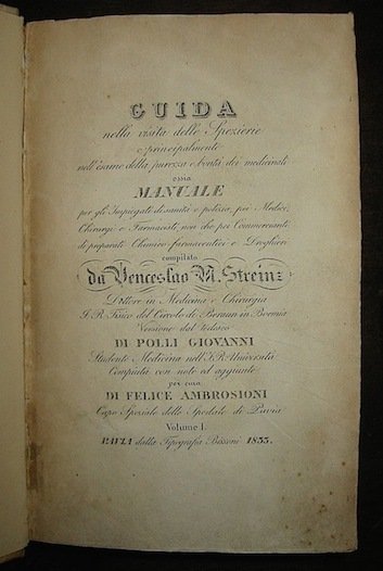 Guida nella visita delle spezierie e principalmente nell’esame della purezza e bontà dei medicinali.
