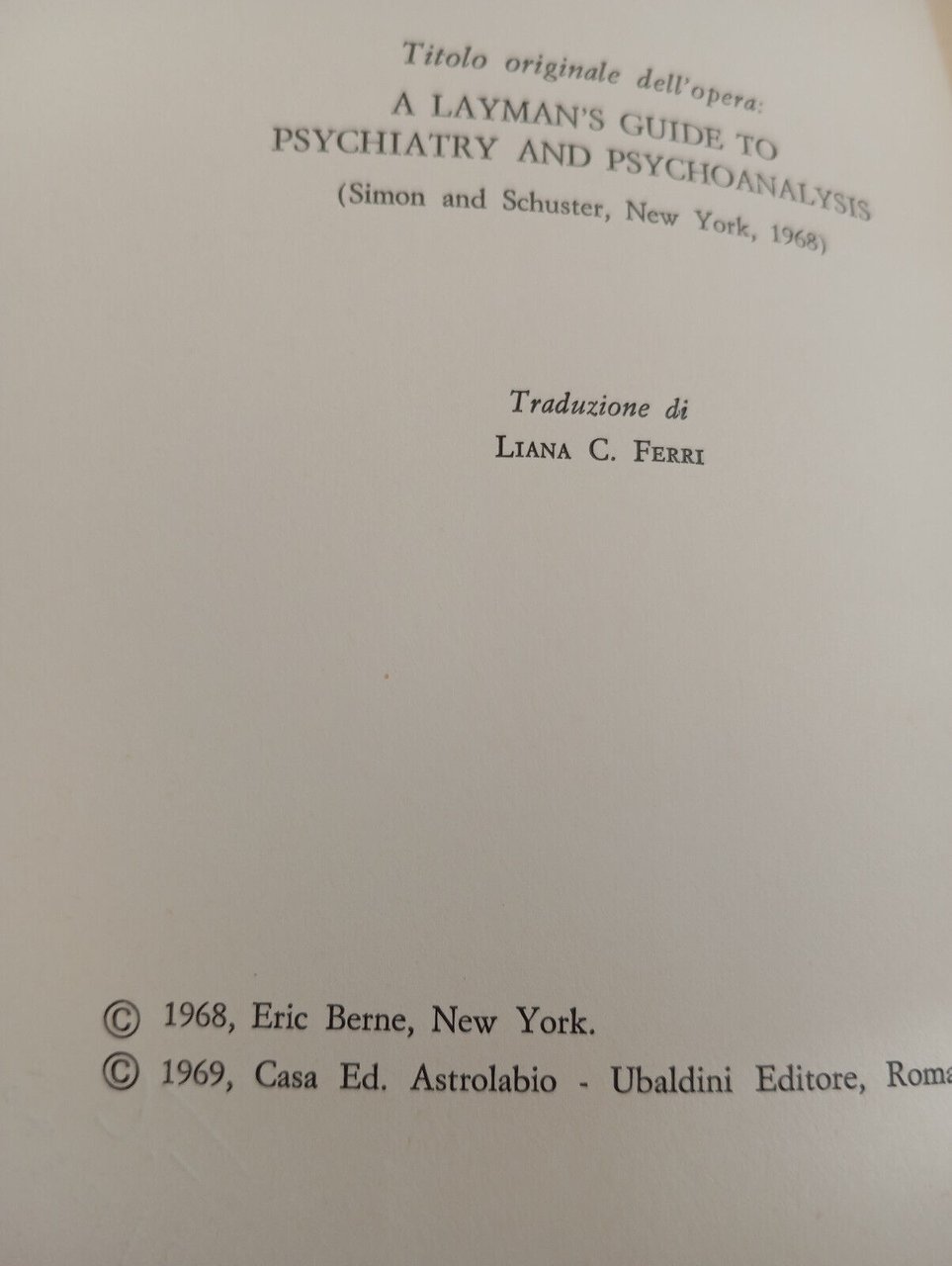 Guida per il profano alla psichiatria e alla psicoanalisi E. Berne Ubaldini 1969