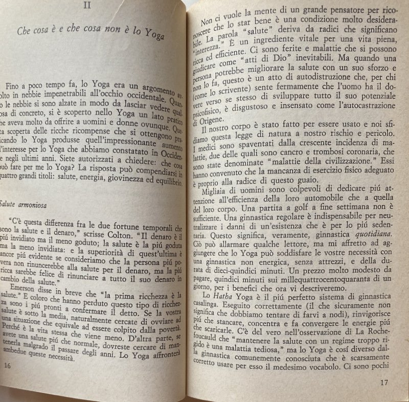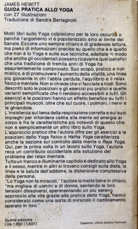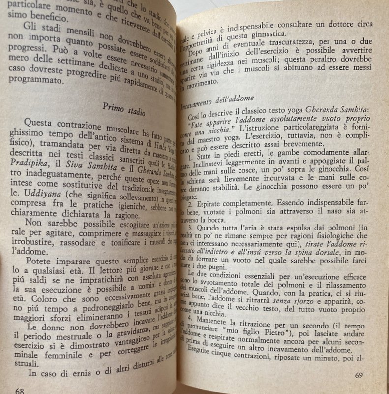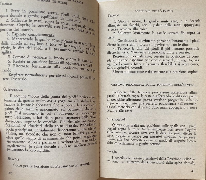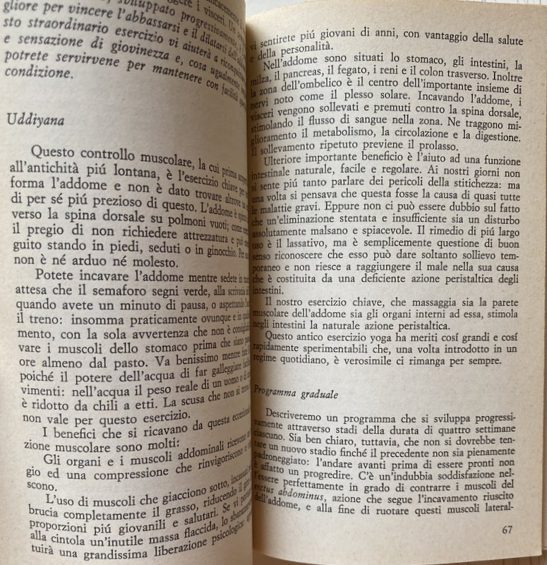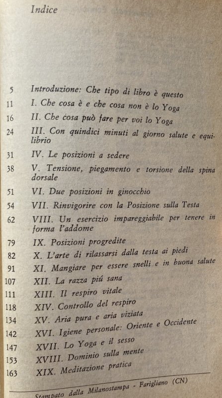 Soggetti: Salute, Benessere, Self Help, Mente, Corpo, Spirito, Spiritualità, Meditazione Trascendentale, Mindfulness, Focalizzazione, Posizioni, Guide pratiche, Manuali, Esercizi, Allenamento, Filosofia, Filosofie orientali, Ginnastica, Attività fisica motoria, Elasticità, Karma, Rilassamento muscolare, Stretching, Flessibilità, Coordinazione, Rilassamento, Respirazione, Respiro, Diaframma, Vitalità, Energia, Postura, Tecniche, Respirare liberamente, Yogins, Core, Rafforzamento, Addominali, Schiena, Lombari, Benefici, Equilibrio mentale, Coscienza, Contemplazione, Inalazione, Muscoli, Allungamento, Articolazioni, Mistica, Concentrazione, Musica, Ambiente, Samadhi, Maestri, Hatha, Saluto, Sole, Riposo, Loto, Pavimento, Braccia, Caviglie, Piedi, Natura, Sangue, Circolazione, Energia, Pranayama, Hindu, Riscaldamento, Bhakti, Serie, Sequenze, Ripetizioni, Poteri psichici, Siddhi, Patanjalis, Royal, Raja, Ambiente mistico, Mantra, Maharishi, Yantra, Jnana, Biofeedback, Tantrismo, Chiusura, Apertura, Gambe, Testa, Collo, Cervicale, Bilanciamento, Balance, Organi, Palmi, Mani, Piedi, Spalle, Iniziazione, Natura, Aria aperta, Inspirazione, Espirazione, Performance, India, Ginocchia, Età, Donne, Uomini, Agilità, Gomiti, Dita, Sistema nervoso, Scorie, Tossine, Alimentazione, Dieta, Mangiare, Essere snelli, Dimagrire, Respiro vitale, Inquinamento, Sesso, Sessualità, Controllo, Igiene, Oriente, Occidente, Religioni alternative, Fumo, Fumare, Isaac Asimov, Colin Wilson, Shiva Samhita, Marghanita Laski, Sambita Gheranda, Paul Dukes, Geraldine Coster, Indra Devi, Donald Carr, Theos Bernard, Vita attiva, Pradipika, Vivere bene, Bambini, Piacere, Collezionismo, Libri Vintage fuori catalogo, Riferimento, Bibliografia, Consultazione, Attenzione, Resistenza, Aerobica, Calma, Stress, Ansia, Guru, Yama, Prana, Ossigeno, Acido lattico, Glicogeno, Polmoni, Benefici, Naso, Narici, Alveoli, Frederick Barnardo, Fumatori, Samuel Johnson, Bagno, Purificazione, Terme, Acqua, Sali minerali, Dhauti, Basti, Neti, Uddiyana Bandha, Zen, Sottovuoto, Kapalabhati, Ashram, Amore, Lezioni, Corsi, Obesità, Aratro, Cobra, Arco, Cavalletta, Diamante, Stadio, Cicli, Nauli, Contrazione, Rotazione, Movimenti, Stasi, Sollevamento, Piegamenti, Programmi, Addome, Stabilità, Pugni, Progressioni, Gallo, Tartaruga, Esperti, Avanzati, Base, Facili, Per tutti, Principianti, Salute, Corpo umano, Buddhismo, Induismo, Taoismo, Maomettanesimo, Islam, Cristianesimo, Brahmin, Nirvana, Digiuno, Fuoco, Health, Wellness, Mind, Body, Spirit, Spirituality, Transcendental Meditation, Focus, Positions, Practical guides, Manuals, Exercises, Training, Philosophy, Oriental philosophies, Gymnastics, Motor physical activity, Elasticity, Muscle relaxation, Flexibility, Coordination, Relaxation, Respiration, Breath, Diaphragm, Vitality, Energy, Posture, Techniques, Free Breathing, Strengthening, Abs, Back, Lumbar, Benefits, Mental Balance, Consciousness, Contemplation, Inhalation, Muscles, Stretching, Joints, Mysticism, Concentration, Ambience, Masters, Greeting, Sun, Rest, Lotus, Floor, Arms, Ankles, Feet, Nature, Blood, Circulation, Energy, Heating, Series, Sequences, Repetitions, Psychic powers, Mystical environment, Closing, Opening, Legs, Head, Neck, Cervical, Balancing, Balance, Organs, Palms, Hands, Feet, Shoulders, Initiation, Nature, Open air, Inhale, Exhale, Knees, Age, Women, Men, Agility, Elbows, Fingers, Nervous system, Waste, Toxins, Nutrition, Diet, Eat, Be slim, Lose weight, Vital breathing, Pollution, Sex, Sexuality, Control, Hygiene, East, West, Alternative religions, Smoking, Active life, Living well, Children, Pleasure, Collecting, Books out of print, Reference, Bibliography, Consultation, Attention, Resistance, Aerobics, Calm, Anxiety, Guru, Oxygen, Lactic acid, Glycogen, Lungs, Benefits, Nose, Nostrils, Alveoli, Smoking, Bathroom, Purification, Spa, Water, Mineral salts, Vacuum packed, Love, Lessons, Courses, Obesity, Plough, Arch, Grasshopper, Diamond, Stage, Cycles, Contraction, Rotation, Movements, Stasis, Lifting, Bending, Programs, Abdomen, Stability, Fists, Progressions, Rooster, Tortoise, Experts, Advanced, Basic, Easy, For all, Beginners, Health, Human body, Buddhism, Hinduism, Taoism, Mohammedanism, Christianity, Fasting, Fire
