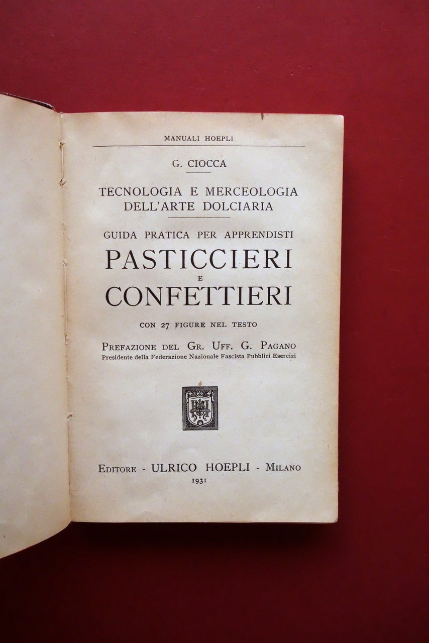Guida Pratica per Apprendisti Pasticcieri e Confettieri G. Ciocca Hoepli 1931