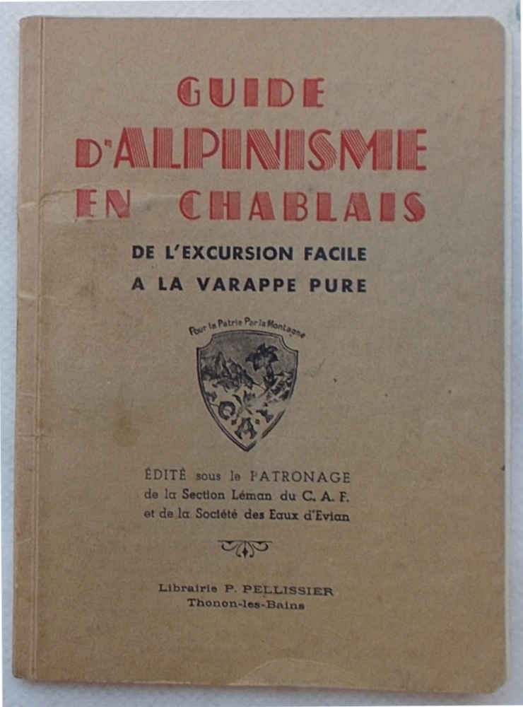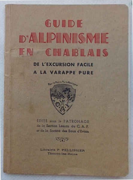 In 16° (cm. 16 x 11,5); pagg. 80; con 1 carta ripiegata f.t. e 17 schizzi n.t.; leggera cartonatura originale a due colori con stemma. Piccole firme. VG. ** Non in Perret. "Sous le patronage de la Section Léman du Club Alpin Français et Société des Eaux d'Evian".