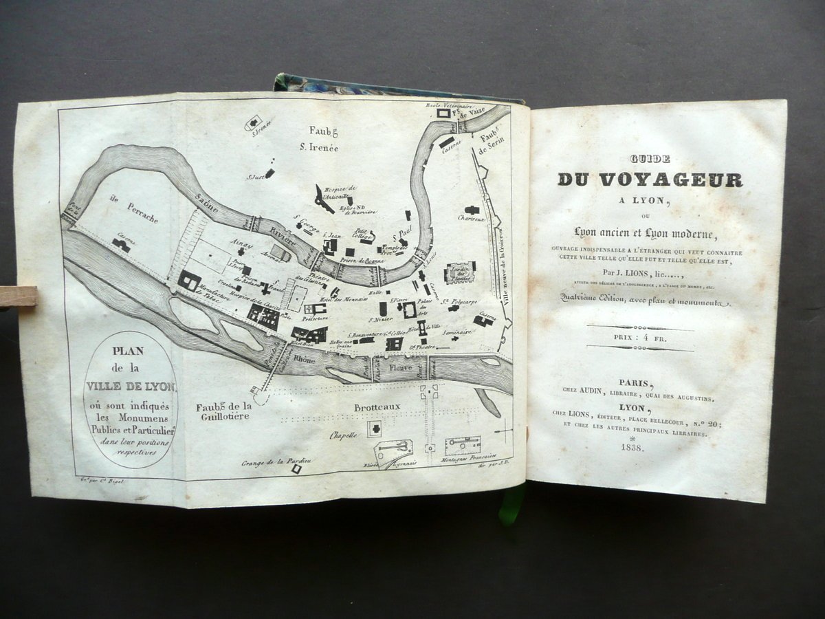 Guide du Voyageur a Lyon J. Lions Audin Paris Lions Lyon 1838 Guida Carta