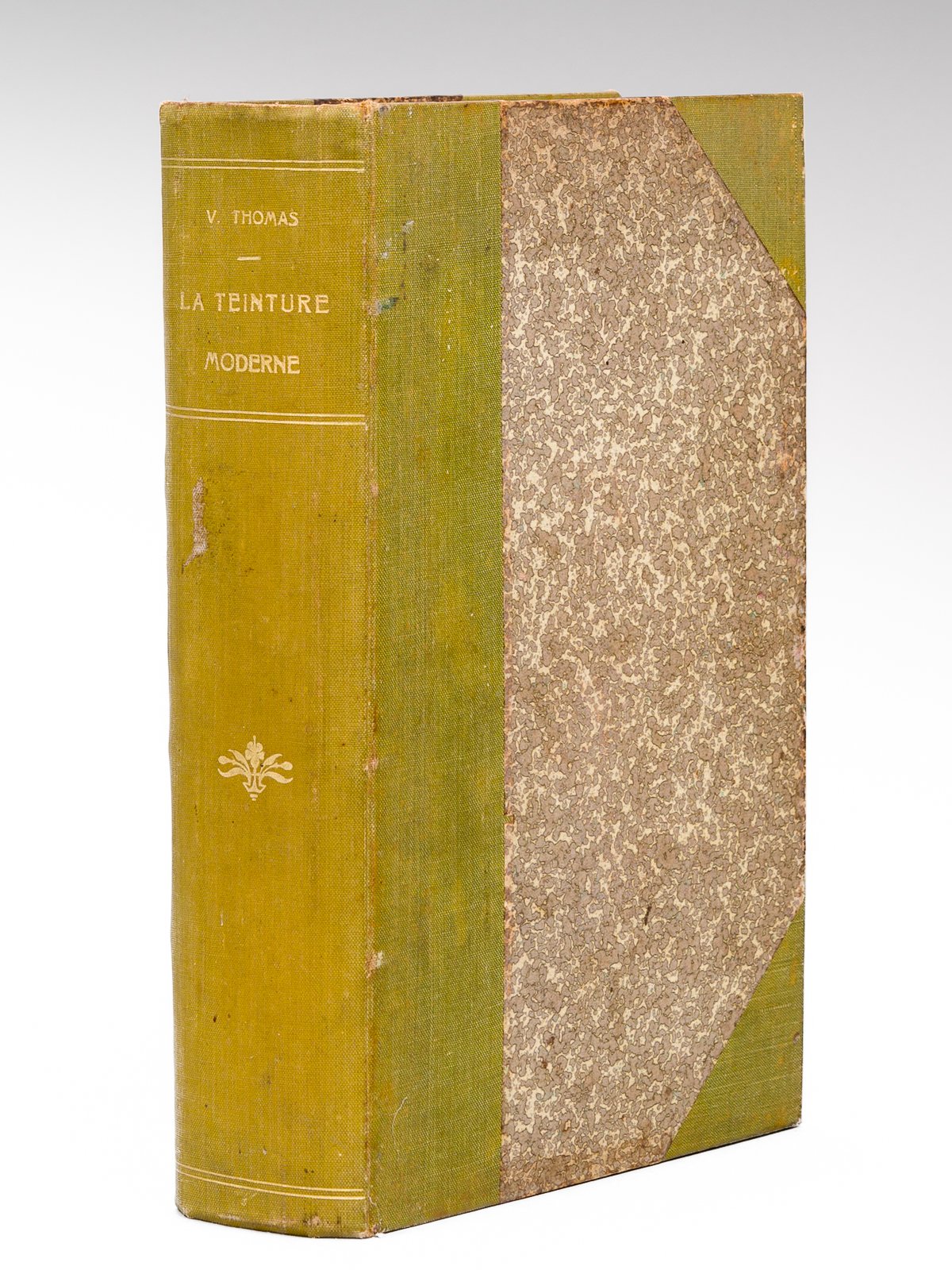 Ouvrage orné de 133 figures dans le texte, 1 vol. fort in-8 reliure de l'époque demi-percaline à coins verte, coll. Encyclopédie Roret, L. Mulo, Paris, 1900, 956 pp. Rappel du titre complet : Guide pratique de Teinture Moderne suivi de l'Art du Teinturier-Dégraisseur contenant l'Etude des Fibres textiles et des Matières premières utilisées en Teinture et les procédés les plus récents pour la fixation des couleurs sur laine, soie, coton, etc. Etat très satisfaisant (rel. lég. frottée, bon état par ailleurs)