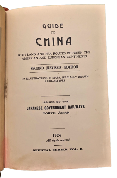 In 8° piccolo (17,8x10,4 cm);(2), XVI, 588 pp., 31 carte, due tavole a colori. Legatura editoriale in piena tela rossa, scolorita da umidità, la cartina posta nella tasca all'ultima pagina, presenta una leggera coloritura rossa passata dalla legatura. All'interno un po' imbarcata ma in buone condizioni di conservazione. Seconda edizione rara, riveduta ed ampliata. Volume D in the series of Official Guide Books ( A and B Japan, C Chosen, Manchuria and Siberia). La prima edizione fu edita nel 1915. Esemplare da studio.