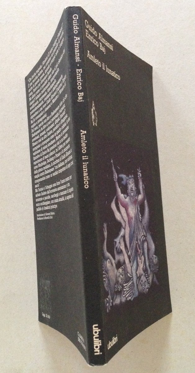 Guido Almansi, Enrico Baj, Amleto il lunatico Ubulibri, Milano, 1987; cm. 22x12.5; pp. 119; con fotografie di Angelo Baj in b/n e a col. a p.pag.; br. ed. fig. a col. Condizioni di conservazione Esemplare in buono stato con leggere tracce d'uso. SETT156.L14949 MT