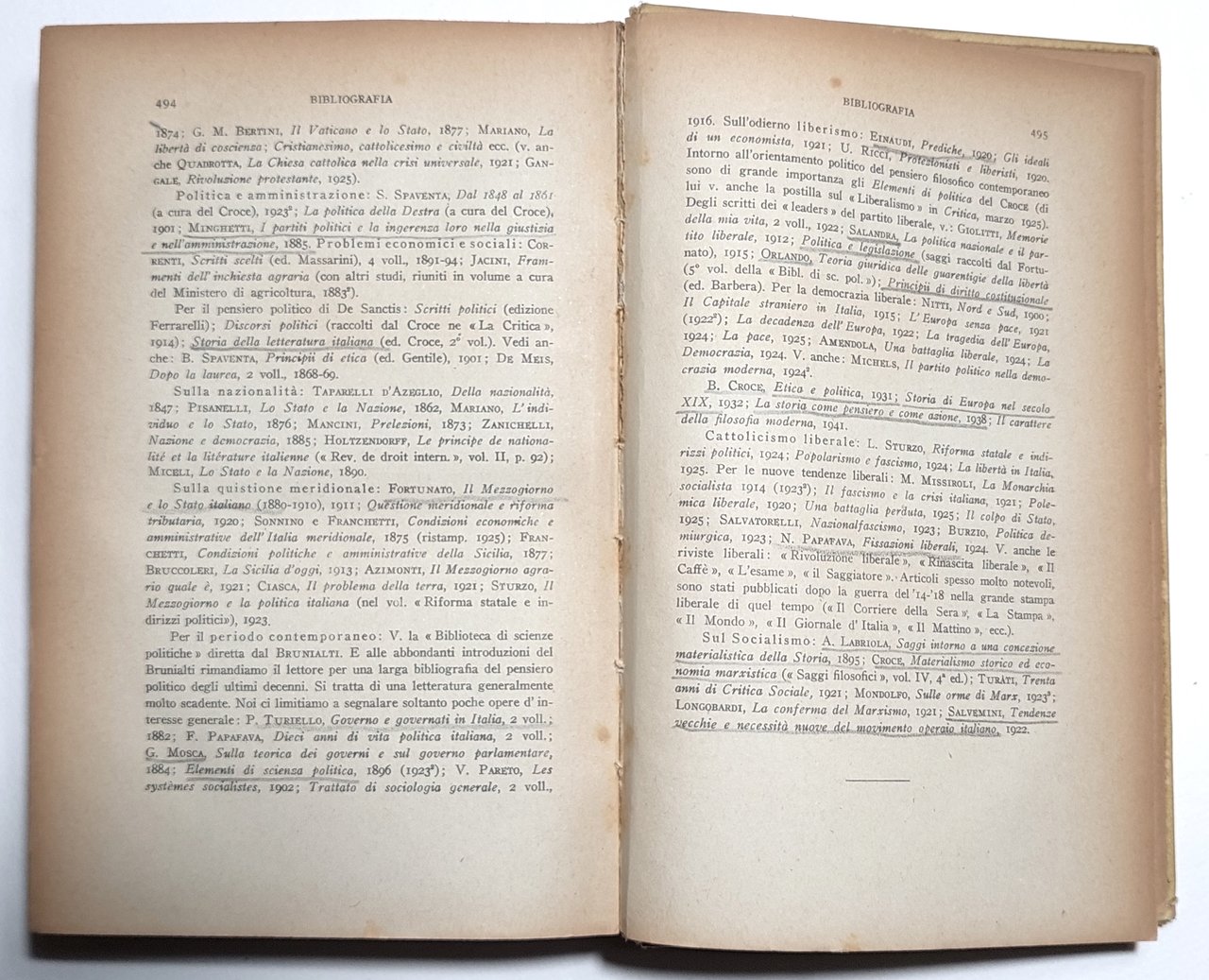 Legatura rigida editoriale con aloni e sporcizie ai piatti e al dorso, una rottura tra piatto anteriore e dorso di cm. 8,5 al margine interno, angoli leggermente deformati, dorso brunito con mancanze ai margini e alcune macchie, tagli bruniti impolverati quelli superiori, fioriture alla seconda di copertina e alla prima pagina bianca, annotazione a matita al margine superiore dell'antiporta e sigla di catalogazione al frontespizio, brunitura al margine esterno delle pagine, sottolineature a matita su circa il 10% delle pagine, numero pagine 499 legatura a vista pagina 494 dimensioni cm 21,6 * 14,5 * 4