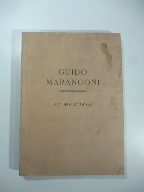 In 8 (cm 17 x 24), pp. 120 con 6 tavole con riproduzioni di opere dedicate a Marangoni. Brossura editoriale con macchia al piatto anteriore. Fioriture alle prime 6 e alle ultime 2 pagine, fioriture sparse presenti anche in altre pagine del volume. Pubblicazione in ricordo del critico d'arte Guido Marangoni.